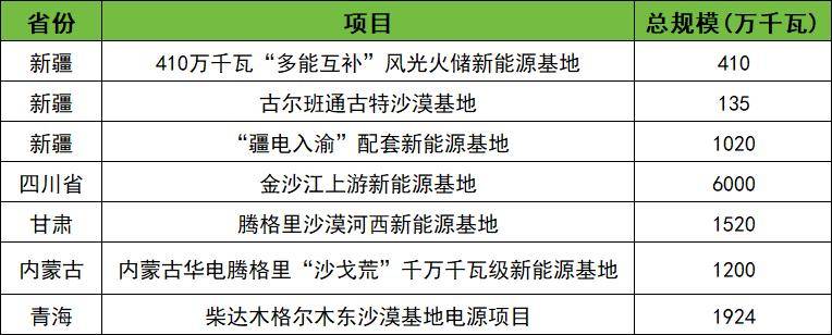 乌兰布和沙漠东北部新能源基地项目规划新能源总规模12GW,其中风电3.5GW,光伏8.5GW,依托周边电厂原址(含近区)配套扩能改造升级400万千瓦煤电,作为支撑性电源,统筹配建新型储能、光热发电等灵活性资源。项目由国家电投、蒙能、淖尔能源三方联合投建,2023年10月此项目立项,2024年12月乌兰布和沙漠东北部新能源基地先导工程100万千瓦光伏发电项目举行了组件圆满交付暨并网仪式。2025年5月8日内蒙古自治区能源局与安徽省能源局就库布其沙漠送电安徽基地配套电源方案达成一致意见,联合上报国家能源局。